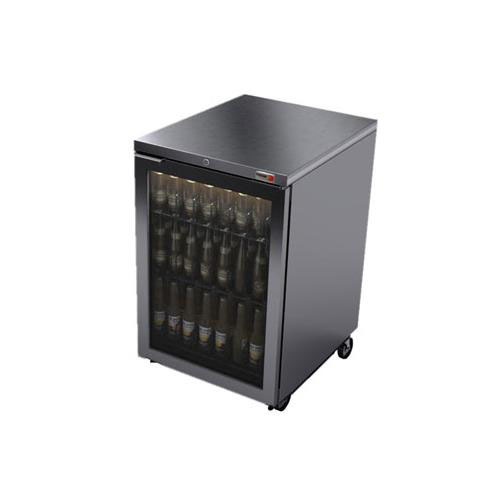 - Let the libations flow free with the Fagor 24 Inch Stainless Glass Door Back Bar Cooler (FBB-24GS) and its smooth operation. This refrigerator holds up to 350 12-oz. cans or 216 12-oz. bottles on 2 adjustable, heavy-duty wire shelves. You'll enjoy the clear display through the dual-pane glass door and bright LED interior lighting. A factory-installed lock ensures the safety of your product. It's sure to hold between 33 degree and 38 degreeF thanks to a free-flowing air system for consistent temperature. From inside to out, this refrigerator is made to endure from stainless steel. It's mounted on heavy-duty casters for easy mobility.Large: This refrigerator holds up to (350) 12-oz. cans or (216) 12-oz. bottles with 2 adjustable, heavy-duty wire shelves.Reliable: It holds between 33 degree and 38 degreeF with a free-flowing air system for consistent temperature.Durable: Durable stainless steel interior and exterior with high-density, CFC-free polyurethane insulation and factory-installed lock.