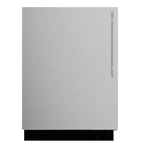 - The Summit Built-In Compact Refrigerator/Freezer (BI605SSVH) offers a full 6 cubic feet of storage capacity in a compact design for installation in a 24-inch space. This attractive refrigerator unit has a sleek, modern design with a stainless steel door and handle. Interior lighting and an adjustable thermostat add convenience, and adjustable shelves and door racks create multiple storage options. The refrigerator comes with a white cabinet and black kickplate and is designed for both under-counter and freestanding use. Other features include glass shelves, manual defrost and door storage for large bottles and condiments. This unit is 100% CFC free. Flexible design: This refrigerator/freezer can be used freestanding or installed under a counter in a 24-inch space Fully featured: Includes adjustable shelves and door racks, adjustable digital thermostat, and interior lighting Spacious storage: A full 6 cubic feet of storage capacity provides added utility in a compact package